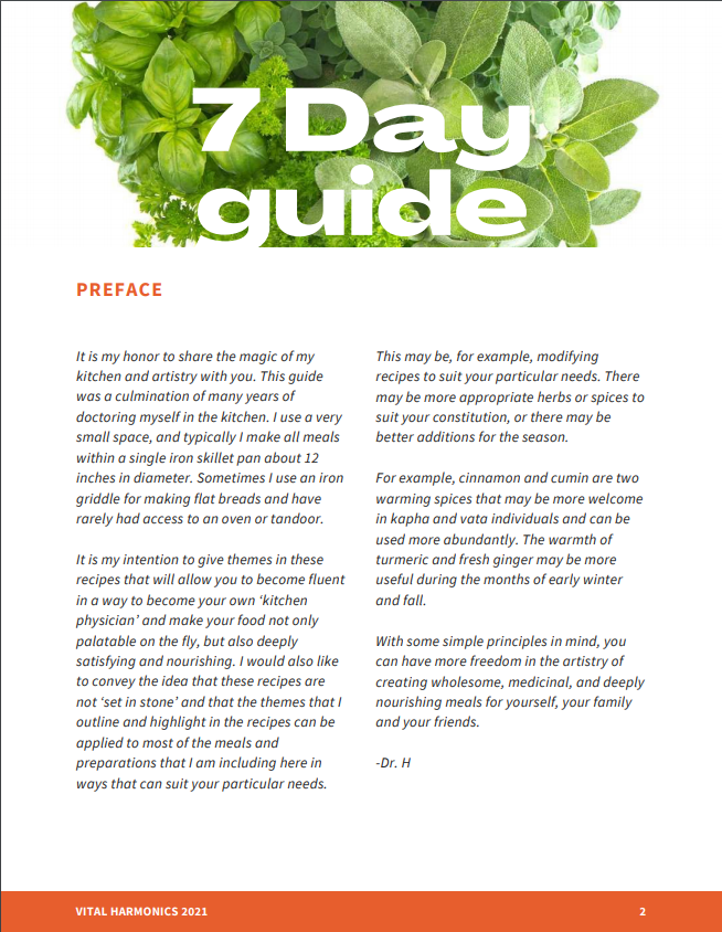 These meals contain a micronutrient, aromatic, and alkaloid profile that is designed to enliven vitality and support digestive agni (fire) within the body to help burn away toxic excess (ama). The value contained herein is immense and I want to make this available broadly so it can permeate home kitchens around the world and help foster a culture of sustainability and sovereignty.